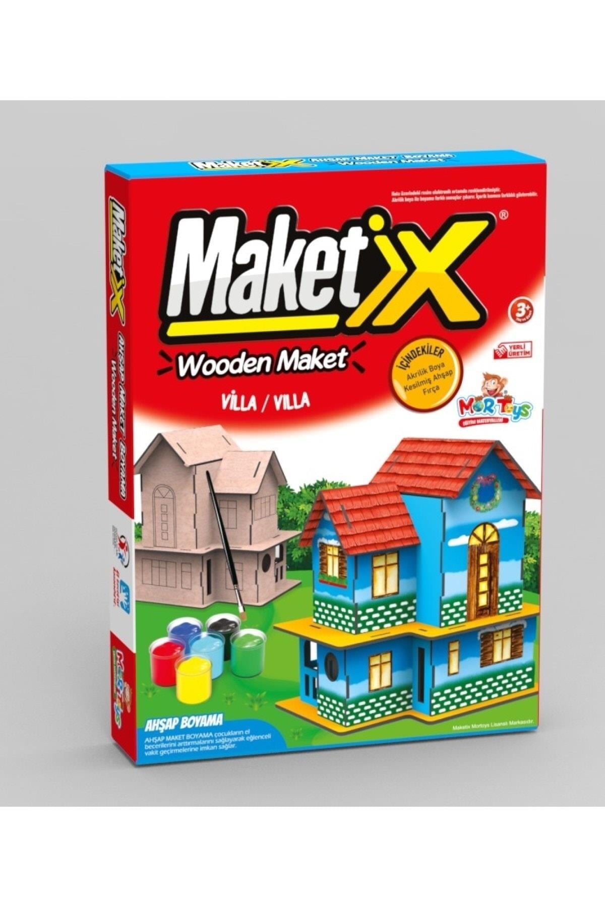 Mortoys Villa Modeli Ahşap Maket Boyama Seti, 6'lı Boya Ve Fırça Dahil