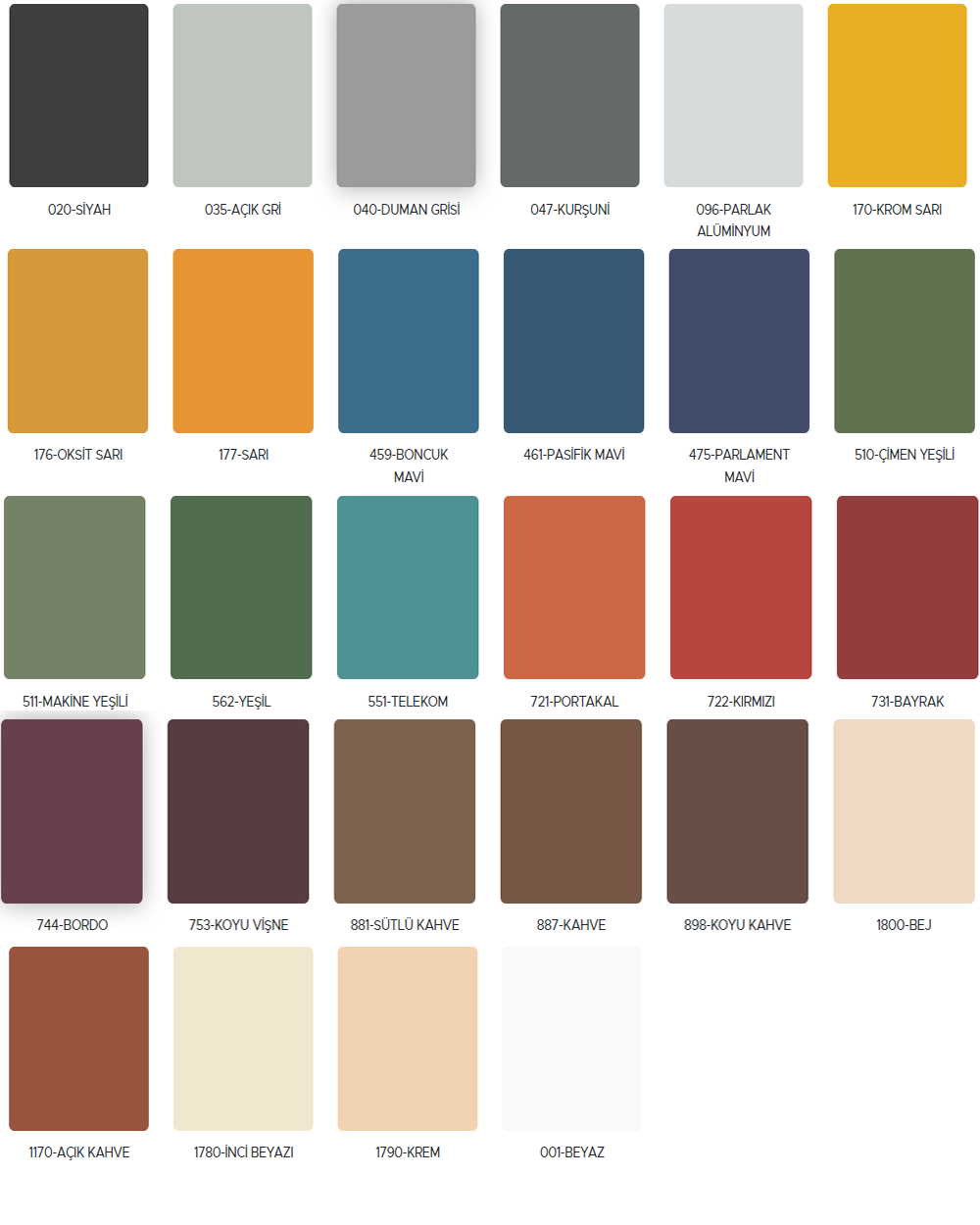Toz kurumasını 3-5 dakikada, dokunma kurumasını 10-15 dakikada ve tam kurumasını 12 saatte tamamlar. (23°C)